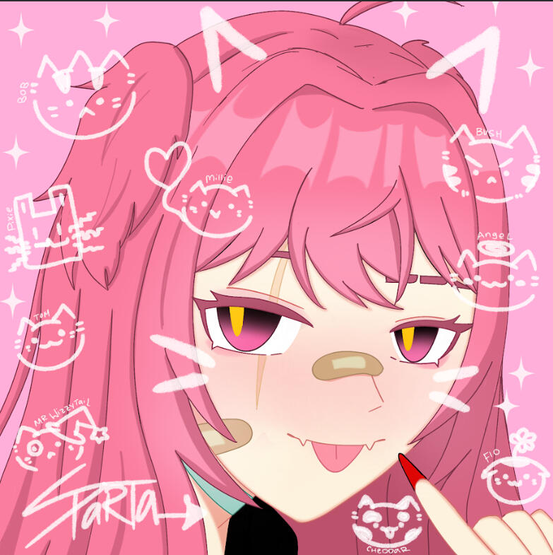 hi i am sparta, creator/cat butler of pileocats which consists of 9 cats with silly features to them. i also draw fan art and my OCs/persona! ────── ⋆⋅☆⋅⋆ ──────────── ⋆⋅☆⋅⋆ ────── i wil use this carrd to showcase my artworks ᨐฅ♡